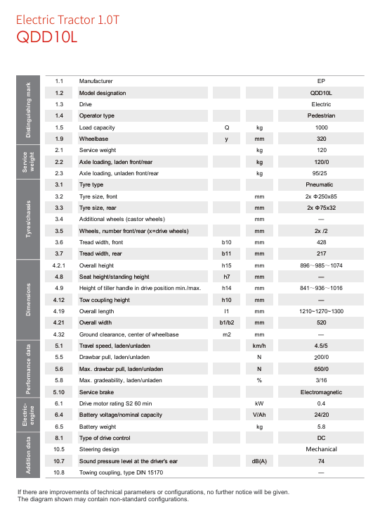 EP Dragtruck QDD10L är en kompakt och smidig dragtruck med litiumbatteri som standard. Med en dragkapacitet på 1000 kg är den perfekt för att transportera vagnar i lager, produktion och logistikcenter. Tack vare Li-Ion-teknologin kan batteriet snabbladdas både via inbyggd och extern laddare, vilket minimerar driftstopp. Med justerbar handtagshöjd och 250 mm pneumatiska däck levererar QDD10L stabil och bekväm körning på både jämna och ojämna underlag. Vi erbjuder även leasing, kontakta våra säljare för mer information.