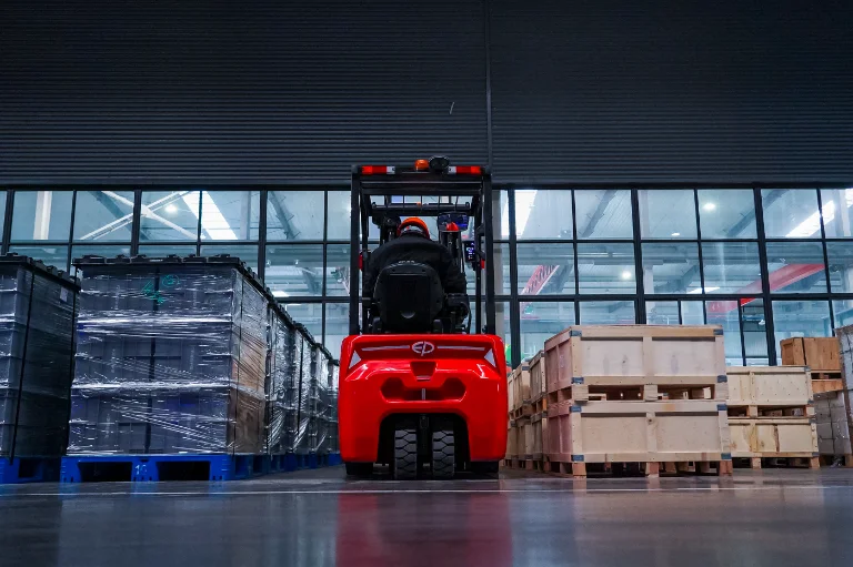 Kompakt motviktstruck för låg takhöjd, lager och logistik