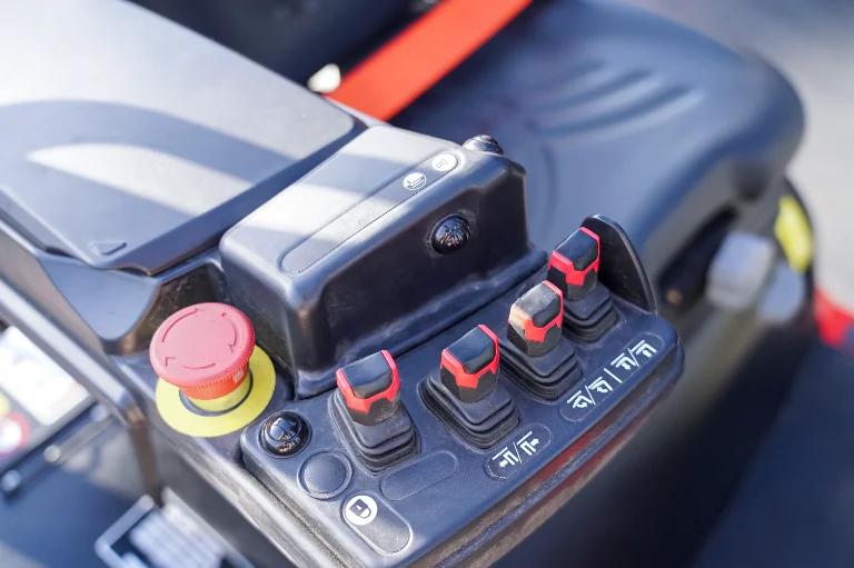 Hydraulisk styrning, Hydraulreglage: fingertip / joystick (integrerat armstöd), Sittande förare (seated)