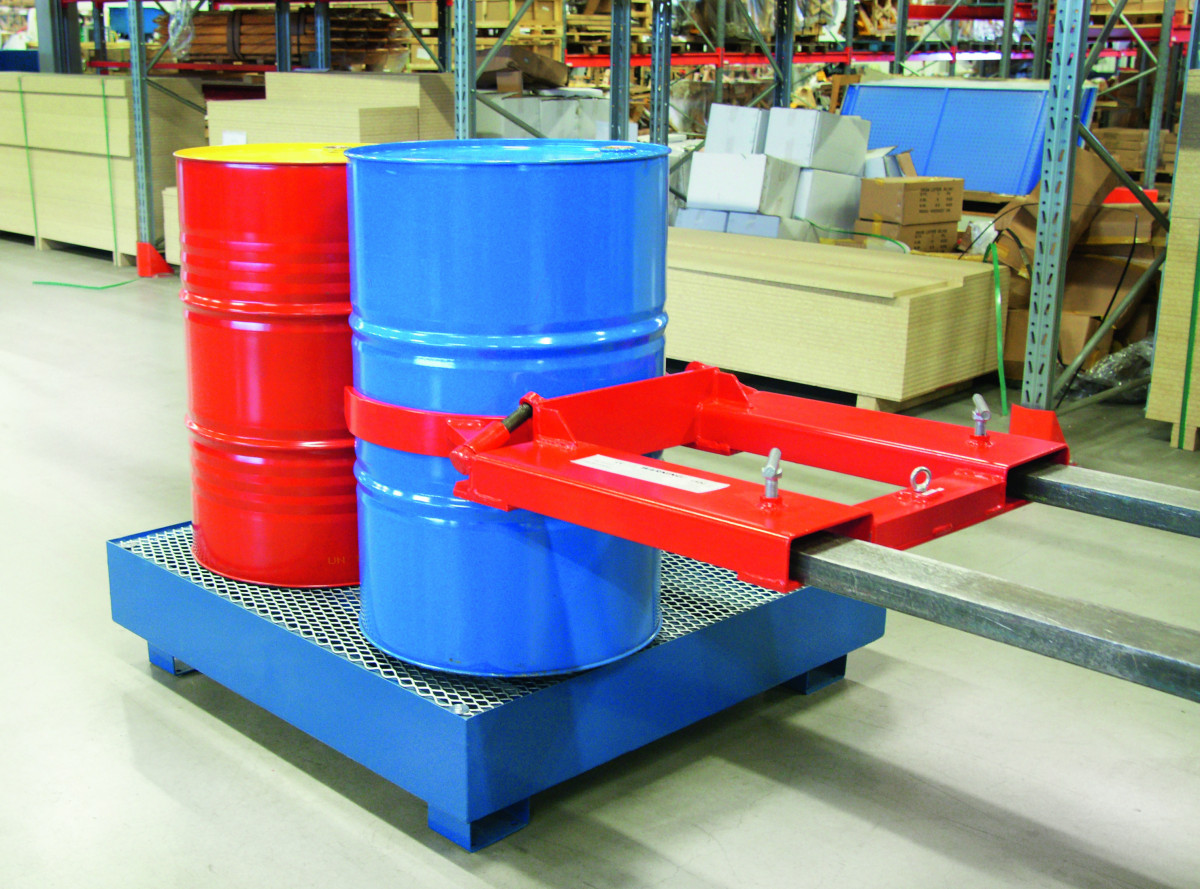 Klämaggregat DG40 är en automatisk lyftanordning för hantering av fat och andra cylindriska laster med en kapacitet på upp till 300 kg. Enkel att montera på truckens gafflar och säker under transport.