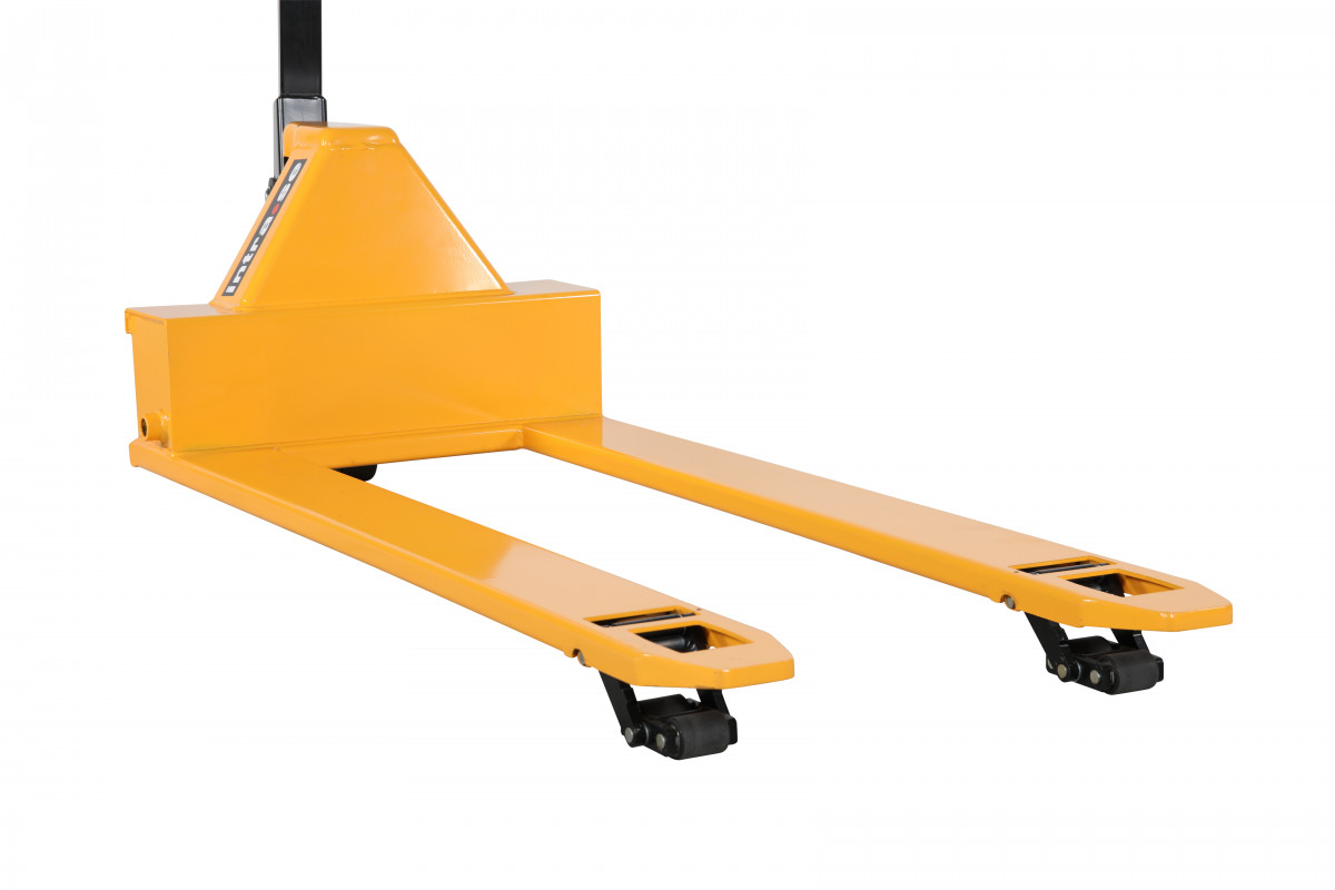 Med en kapacitet på 1500 kg är denna handtruck perfekt för lager, butiker och produktionsmiljöer som kräver effektiv hantering av specialpallar. Den låga gaffelprofilen gör det möjligt att hantera pallar som annars skulle vara svåra att lyfta.
