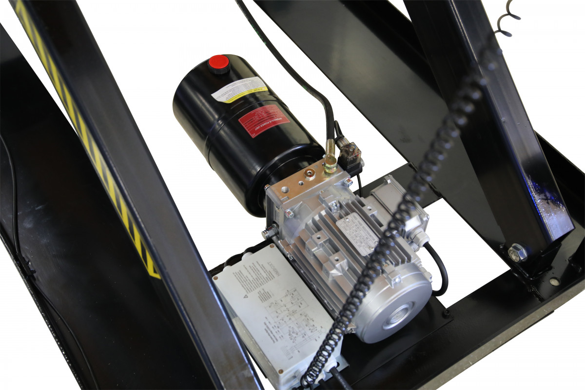 Kraftigt elektriskt lyftbord med elektro-hydraulisk drift.