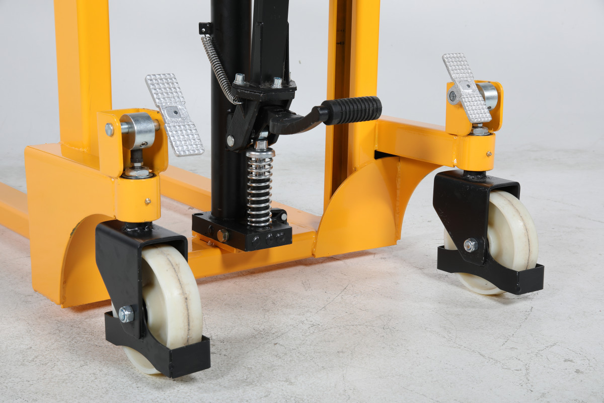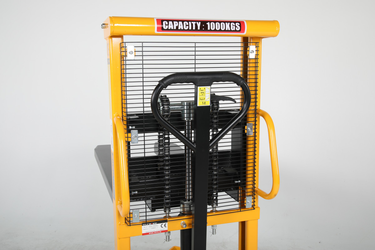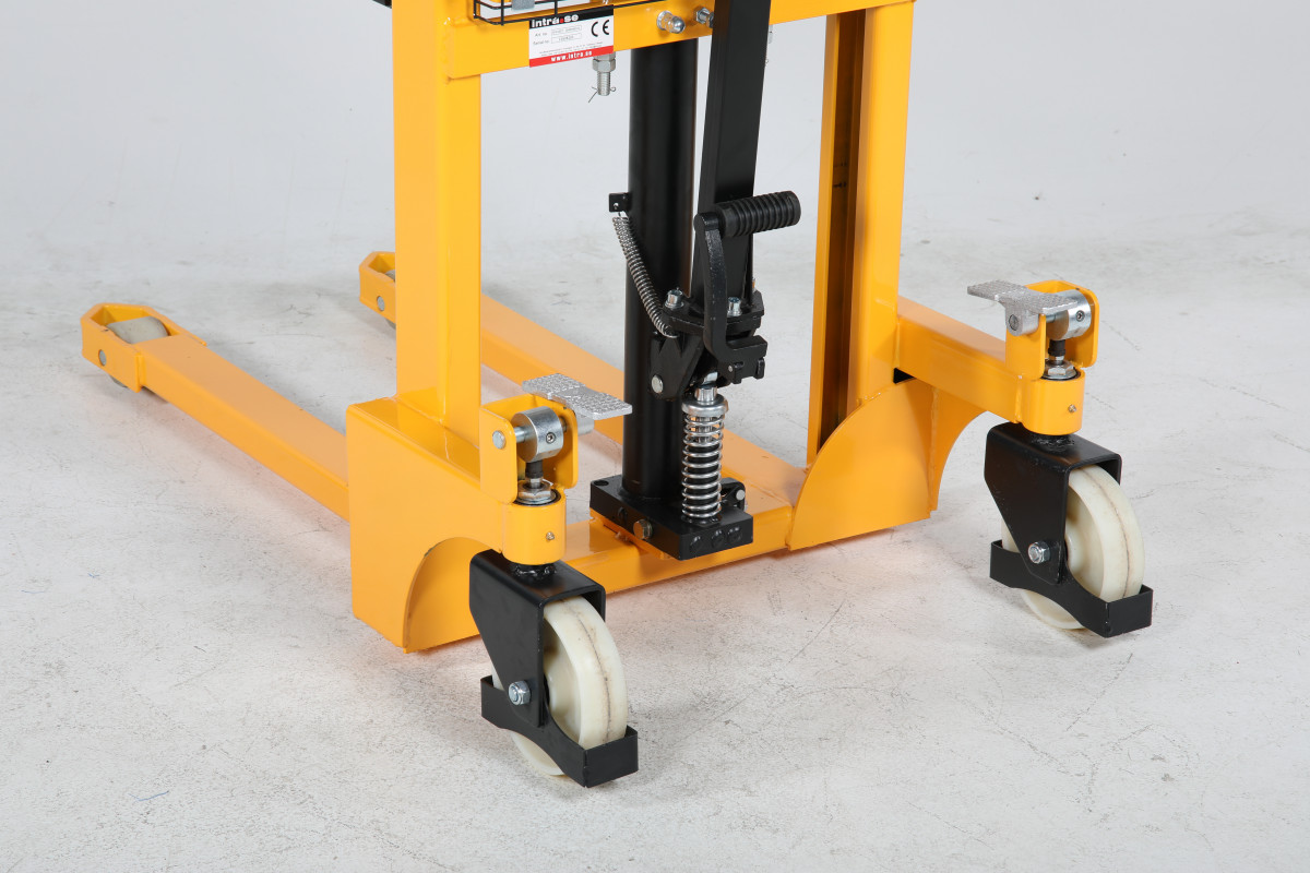 Robust manuell staplare med fot- och handpump för optimal ergonomi. Kapacitet 1000 kg